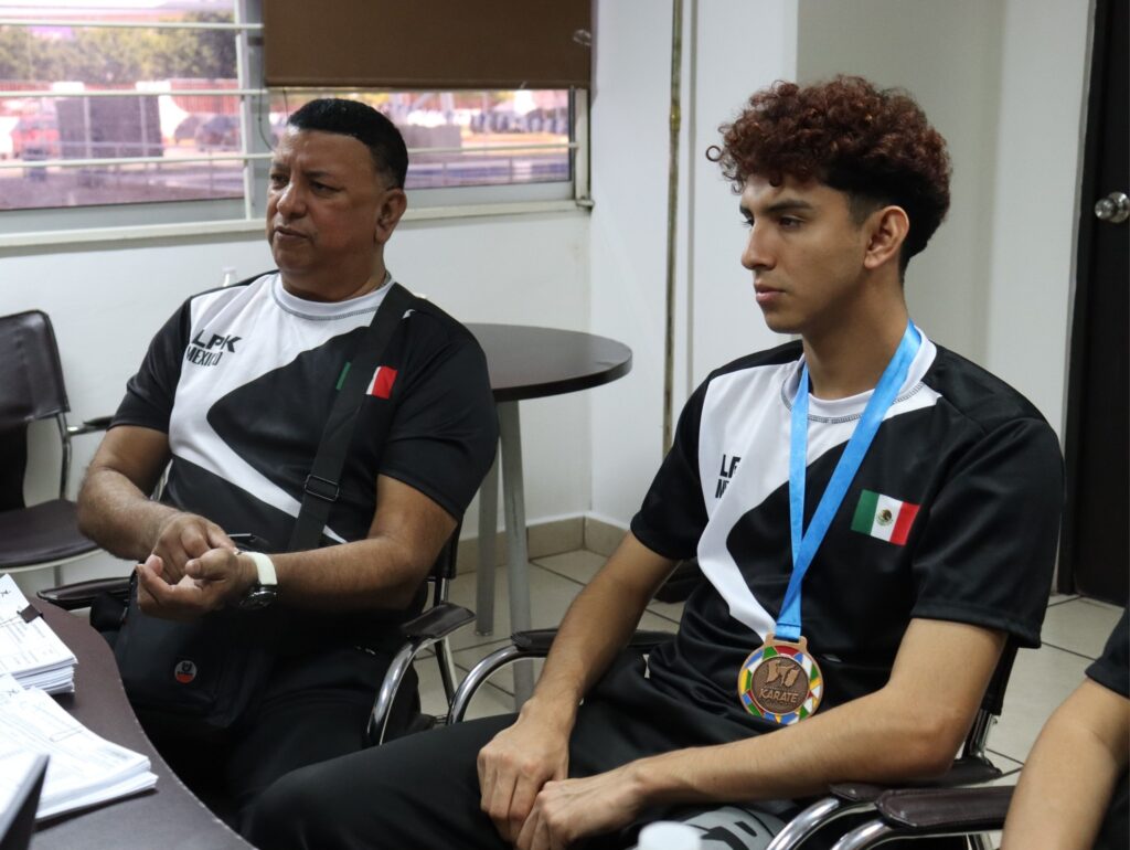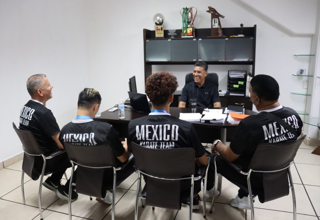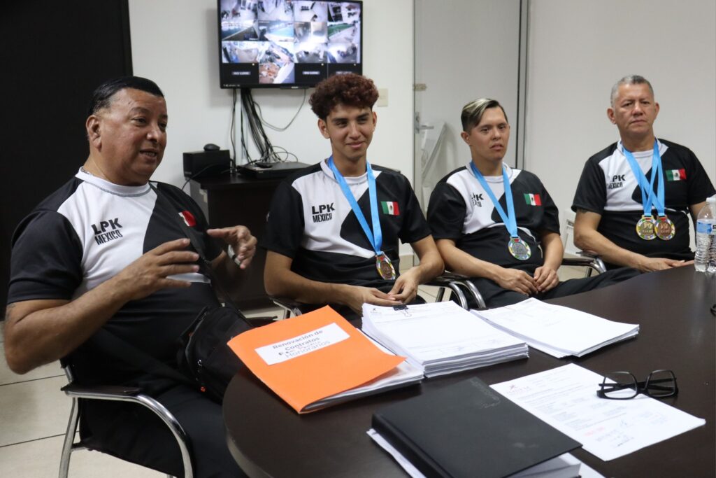 El director del Instituto Municipal del Deporte Mazatlán, Ezequiel Mora Bracamontes, recibió al director de LPK, Juan José Hernández Lizárraga, así como a los medallistas mazatlecos, Juan Heredia, Juan Luis Hernández, así como el sensei Luis Hernández Lizárraga.