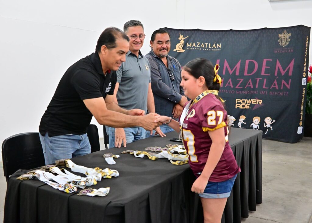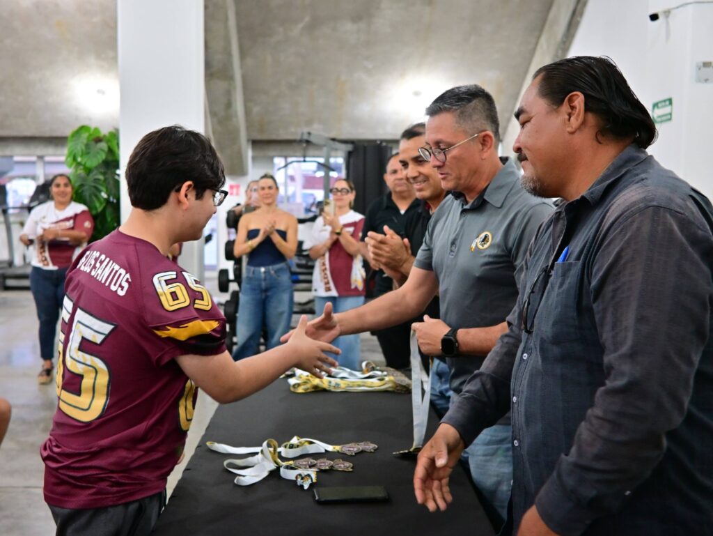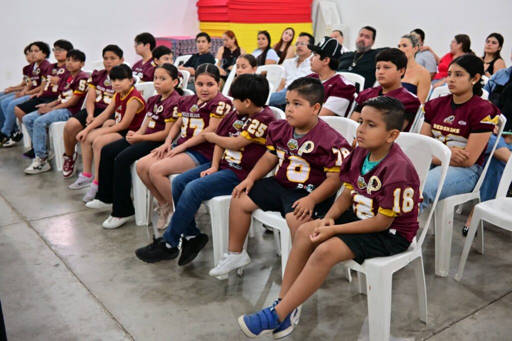 A la ceremonia de reconocimientos asistió el coordinador de Ligas y Clubes del Imdem, Freddy Cisneros González, para acompañar a Martín Guillermo Torres Noverola, vicepresidente de la Asociación de Futbol Americano de Sinaloa, así como al head couch de Redskins, Guillermo Báez de la Mora.