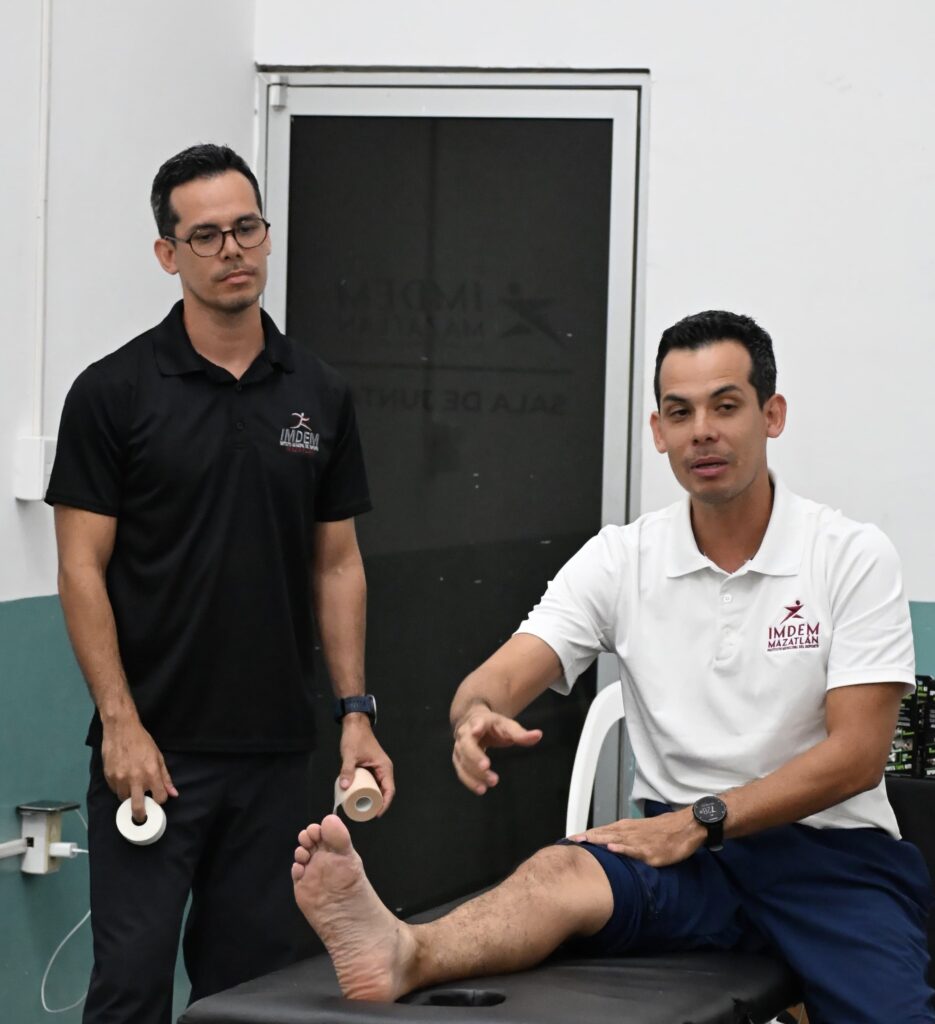 De la mano de los psicólogos del Imdem, Perla Osuna y Rafael Ballesteros, así como de los fisioterapeutas del equipo interdisciplinario de la coordinación de Deporte Federado del Instituto, la preparación para atletas, entrenadores y promotores, se llevó a cabo de forma simultánea en la sala de juntas y el salón de usos múltiples del Instituto Municipal del Deporte Mazatlán.