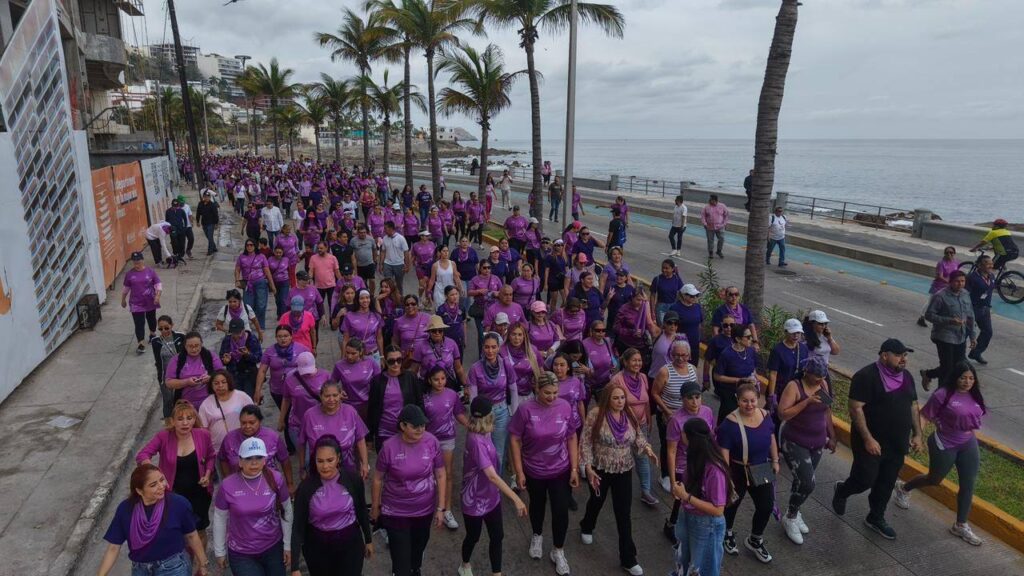 La Presidenta Municipal, Estrella Palacios, encabezó la caminata “Tejiendo igualdad, sostenemos el cambio” en el marco del Día Internacional de la Mujer, acompañada por miles de mujeres mazatlecas para promover la reflexión y el compromiso por la igualdad.